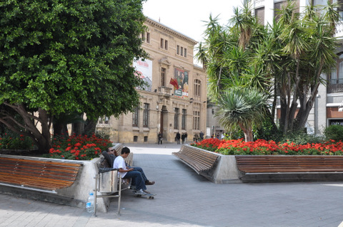 Plaza de Camachos, Murcia A small green oasis close to the Hydraulic Museum on the southern bank of the River Segura Crossing the Puente Viejo (or Puente de los Peligros) to the south bank of the River Segura in Murcia, the visitor moves out of the old centre where the Moors founded..
